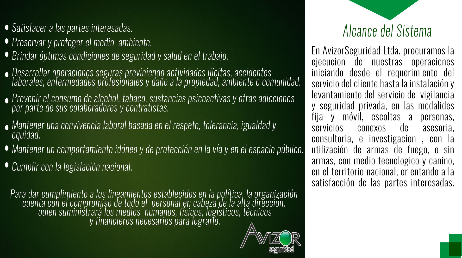 Para el año 2020 Avizor Seguridad Ltda. Se proyecta como la empresa con mayor expansión a nivel nacional en servicios de seguridad física y tecnológica.